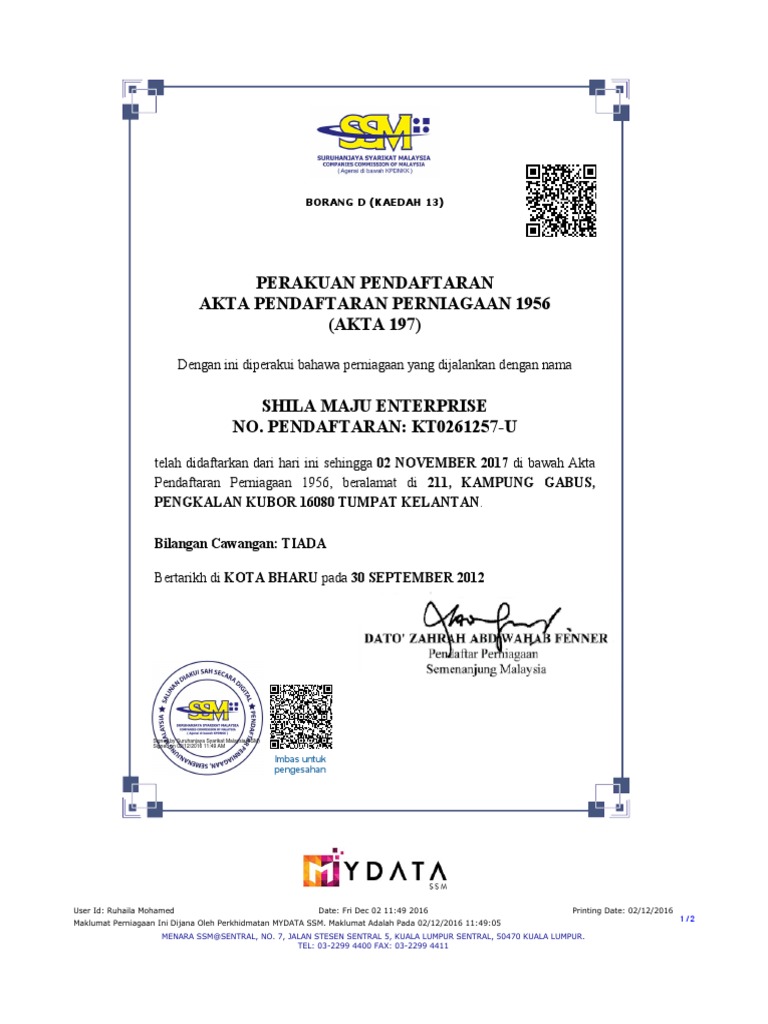 Suruhanjaya Syarikat Malaysia Laman Rasmi Makluman Bermula Pada 24 6 2016 Ssm Telah Menggunapakai Format Baharu Sijil Pendaftaran Perniagaan Borang D Dan Sijil Perakuan Pembaharuan Perniagaan Borang E Perubahan Ini Melibatkan System Ssm